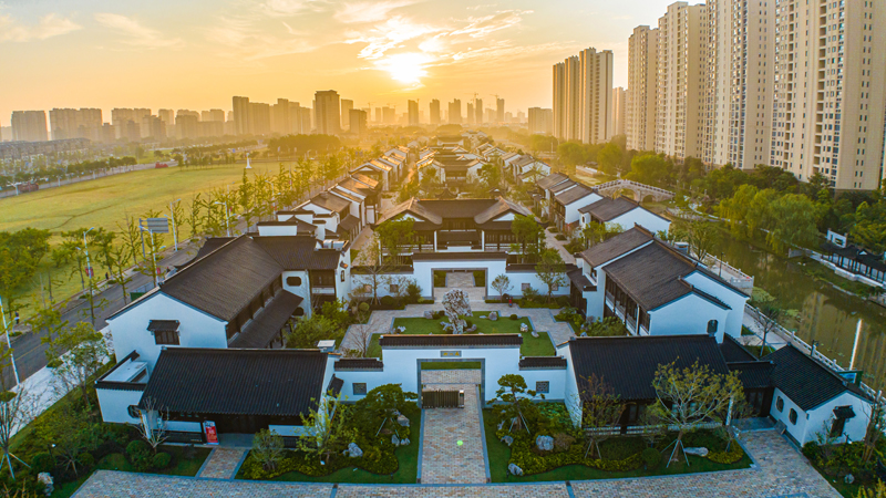 蘇州街以蘇州傳統(tǒng)建筑風(fēng)格為特色,粉墻黛瓦,飛檐戧角,沿河而建,通過(guò)古典園林多種營(yíng)造手法,創(chuàng)造出豐富多樣的景致,或見(jiàn)庭院深深,或見(jiàn)小橋流水,步移景易。同時(shí),融入宿遷地方元素,集商業(yè)、休閑、購(gòu)物、文化為一體,讓廣大市民在“家門(mén)口”就能體驗(yàn)到原汁原味、詩(shī)情畫(huà)意的蘇式風(fēng)情。