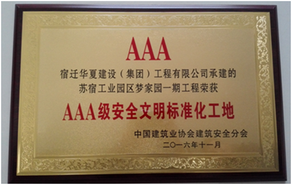 夢家園獲得“AAA級安全文明標準化工地”稱號