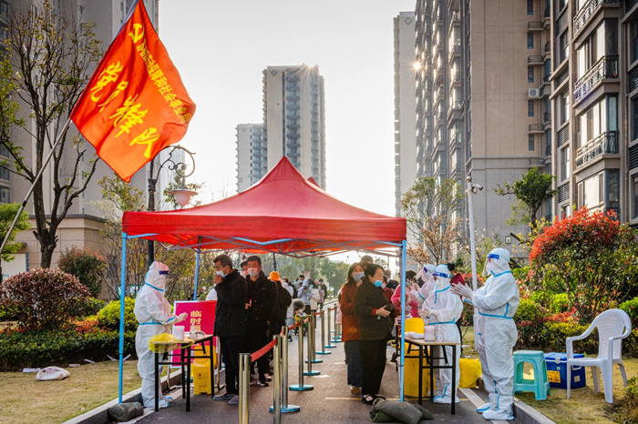 一支黨員先鋒隊,全力打贏疫情防控阻擊戰(zhàn) 疫情就是命令。為有序開展園區(qū)大規(guī)模區(qū)域核酸檢測工作,園區(qū)機關(guān)、企事業(yè)單位黨員干部積極響應黨工委號召,火速集結(jié),爭分奪秒開赴核酸檢測預定點位。從凌晨的物資準備、早上5點的核酸檢測,到夜間的“掃樓行動”,忙碌地穿梭于樓棟之間的黨員突擊隊員,堅決落實好“不落一戶,不漏一人”的防控要求。共產(chǎn)黨員、園區(qū)安委辦綜合協(xié)調(diào)與巡查督查處副處長朱婷婷說:“在這個疫情防控的緊要時期,作為一名共產(chǎn)黨員,拉得出、打得響,是我對自己最基本的要求。”在履行防控職責同時,黨員志愿者和醫(yī)護人員跨前一步,為社區(qū)獨居老人、行動不便老人提供送檢上門等貼心服務,受到群眾廣泛點贊。