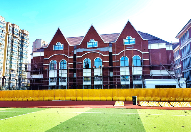 歷經(jīng)風(fēng)吹日曬,嚴(yán)寒酷暑,宿蘇外部分建筑立面外墻磚出現(xiàn)無序脫落,嚴(yán)重影響著校園整體美觀,也存在著一定的安全隱患,故在此假期期間進(jìn)行外立面改造升級。
