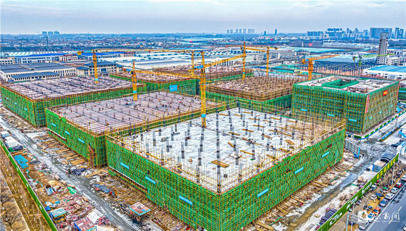 12月26日,蘇宿工業(yè)園區(qū)智慧信息產(chǎn)業(yè)園項目施工現(xiàn)場,建設(shè)人員正在有序施工。