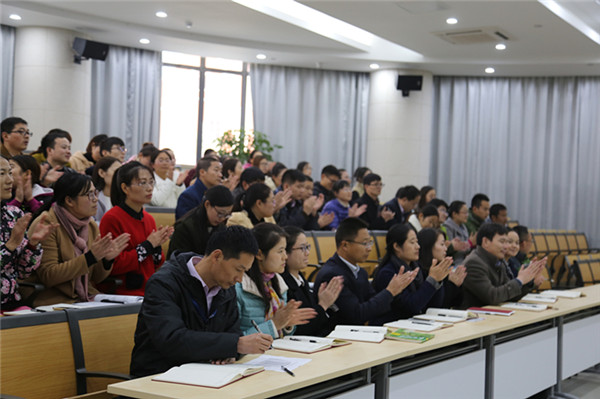 駱敏從“做教師的意義、如何成為學(xué)生心目中的好老師和如何成為大家心中的好老師”三個(gè)方面給老師們上了一堂別開生面的專業(yè)發(fā)展課。駱敏指出,教師應(yīng)該具有高尚奉獻(xiàn)、完善自我的意識(shí),特別要從細(xì)節(jié)方面、從學(xué)生的角度思考,開啟通向優(yōu)秀教師的通道。駱敏認(rèn)為學(xué)生心目中的好老師應(yīng)該是一名演說(shuō)家、幽默大師,具有獨(dú)特的教學(xué)藝術(shù),對(duì)孩子能夠真誠(chéng)贊美、懂得尊重學(xué)生、真心關(guān)愛學(xué)生。作為好老師,應(yīng)該修德、修志、修學(xué)、修能、修性,有欣賞的眼光,感恩的心態(tài)。
